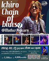 | 23 | 金 | ichiro Chain Of Blues #7act ichiro サポート にーやんAratake ねーやんAratake KーSUKEYukaShirakami SlabAsano ご予約は、 ichiro web site Mother Popcorn 各サポートメンバーまで |
