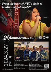 | 27 | 水 | From the heart of NYC's clubs to Osaka's soulful nights!!Melonmama feat.山崎美空 山崎美空(vo) 井野アキヲ(gt) 大楠雄蔵(key) 中島かつき(ba) 梶原大志郎(dr) |