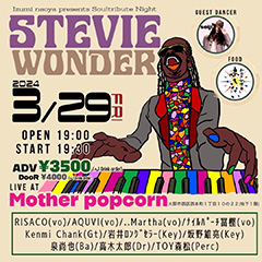 | 29 | 金 | Izumi naoya presents Soultribute NightSTEVIE WONDER RISACO(VO)/AQUVI(VO)/..Martha(vo)/ナイルパーチ冨樫(VO) Kenmi Chank(Gt)/岩井ロングセラー(Key)/坂野雄亮(Key) 泉尚也(Ba)/高木太郎(Dr)/TOY森松(Perc) GUEST DANCER seiji |