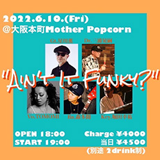 | 10 | 金 | 【Ain't It Funky?】TOMOMI(Vocal) 星川薫(Guitar) 森多聞(Bass) 堀田幸祐(Keyboard) 三浦晃嗣(Dram) ご予約は下記メールアドレスへ「ライブ日程・お名前・人数」を明記の上お願い致します。 hiyotuki@gmail.com |