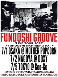 | 1 | 金 | <本イベントは中止となりました>ふんどしグルーヴ Live Tour 2022 ふんどしまみれの回 【ふんどしグルーヴ】 波田野哲也(Dram) 森多聞(Bass) 三戸克幸(Keyboard&Vocal) 田中義人(Guitar) |