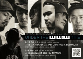 | 16 | 金 | UNDER THE WILLOW NITE〜UNDER THE WILLOW -RAIN- Release Party SP〜 MAIN LIVE act: タケウチカズタケ+韻シストBAND LIVE: JAB, Lions ROCK, BESHALIST |