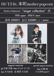 | 13 | 金 | Daishiro Kajiwara'ssinger collection ☆Megu ☆伊沢ビンコウ ☆日比直博 Support musician Gt 古賀 和憲 Key ひらゆ さつき Key 石橋創 Ba 大竹 紗英 Dr 梶原 大志郎 |