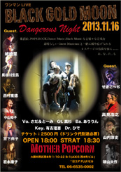 | 16 | 土 | ![]() BLACK GOLD MOON -Dangerous Night- vo さだ&とーみ g 真杉 b ありりん key 有吉理恵 d ひで guest 城崎潔 長谷川宏昌 西村重徳 中山知子 宮下典子 岩永康子 せきこ〜じ 高見浩之 山内淳史 晴山大作 |