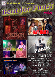 | 4 | 月 | Beat for Fun ♪♪ vol.3出演 ■In My Dish! ■冥尊 ■PLAN ■YAVA HALEN ■SpACED OUT |