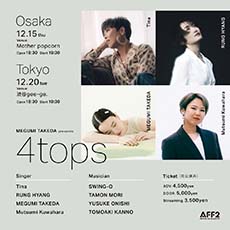 | 15 | 木 | シンガーソングライター武田恵美主催ライブ『4tops』東京、大阪で2公演開催決定!ゲストシンガーにはTina、RUNG HYANG、桑原睦実をお招きし、豪華で色鮮やかな4色のステージをお届けします。そしてサポートミュージシャンにSWING-O(Key)、森多聞(Ba)、オオニシユウスケ(Gt)、菅野知明(Dr)を迎えて最高のステージをお届けします! ぜひお越しください! MEGUMI TAKEDA presents「4tops」 [Singer] Tina RUNG HYANG 武田恵美 桑原睦実 [Musician] Key.SWING-O Ba.森多聞 Gt.オオニシユウスケ Dr.菅野知明 ご予約 http://www.mother-popcorn.com/index.html Tel 06-6535-0002 主催 たけだめぐみワンマンライブ実行委員会 |
