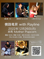 | 26 | 月 | 横路竜昇 with Rayline横路竜昇(Sax EWI) 藤山龍一 (Gt) 上條みずほ (Key) 森岡克司 (B) 村上 友(Ds) |