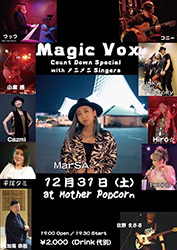 | 31 | 土 | MAGIC VOX カウントダウンスペシャル!with メニメニSingersDr.加龍宗哲 Ba.佐野まさる Gt.コニー Key.つっつ Vo. MarSA Gtvo 小西茜 Funky Bag Factory |